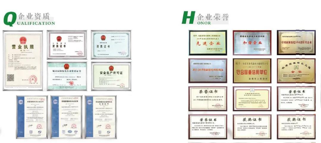 福建省春天生態(tài)科技股份有限公司先后獲得國家授予的“國家高新技術(shù)企業(yè)”、“中國風(fēng)景園林學(xué)會優(yōu)秀園林工程大金獎”、“福建省守合同、重信用單位”、“福建省城鄉(xiāng)建設(shè)系統(tǒng)和諧企業(yè)”等榮譽稱號。