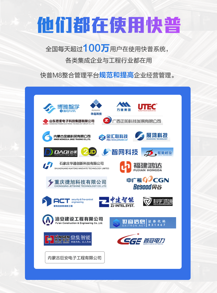 快普M8整合管理平臺(tái)專注工程行業(yè),深入項(xiàng)目管理啟動(dòng)、計(jì)劃、實(shí)施、執(zhí)行、收尾等五大過程,實(shí)現(xiàn)以項(xiàng)目管理為線索,以預(yù)算、成本和合同管理為主要手段,對(duì)工程項(xiàng)目進(jìn)行有效地組織、計(jì)劃、協(xié)調(diào)和控制,實(shí)現(xiàn)合理配置資源、保障良好的項(xiàng)目效益。