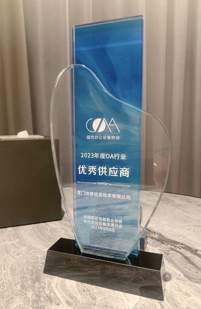 作為辦公設備行業(yè)發(fā)展伙伴與企業(yè)數字化平臺供應商,快普在大會上得到了行業(yè)協(xié)會及全國OA伙伴的贊許,再次被評為“2023年度OA行業(yè)優(yōu)秀供應商”!